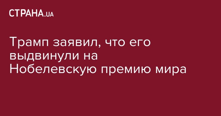 Трамп заявил, что его выдвинули на Нобелевскую премию мира