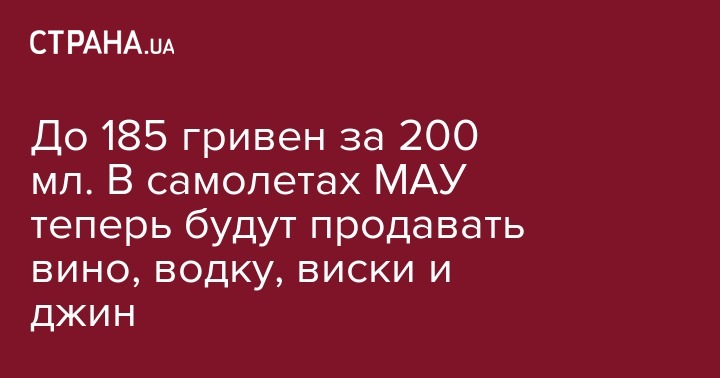 Раньше пассажиры самолетов "Международных авиалиний Украины" могли купить только пиво. Теперь в меню будут доступны вино, водка, наливки, виски и джин. При этом продаваться они будут в специальных маленьких бутылочках. За 200 миллилитров вина с пассажиров будут брать 5 - 6 евро (154 - 185 грн), за 50 - 100 миллилитров более крепких напитков придется заплатить 4 - 5 евро (123 - 154 грн). Известно, что в алкогольное меню воли водка Nemiroff и Absolut, а также "Наливки из Львова".