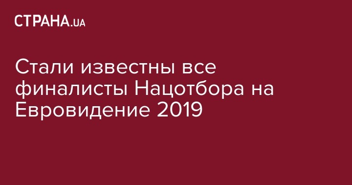 Стали известны все финалисты Нацотбора на Евровидение 2019