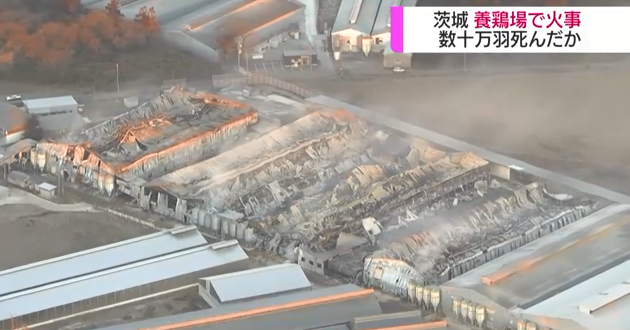 Из семи корпусов корпусов птицефермы полностью сгорели четыре, сообщает канал NHK.