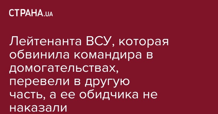 Лейтенанта ВСУ, которая обвинила командира в домогательствах, перевели в другую часть, а ее обидчика не наказали