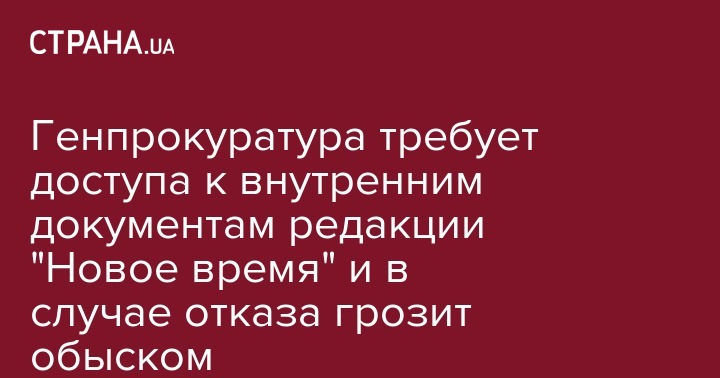 Генпрокуратура требует доступа к внутренним документам редакции "Новое время" и в случае отказа грозит обыском