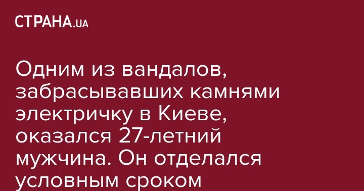 В приговоре Подольского районного суда Киева говорится о том, что мужчина, который участвовал в разгроме столичной электрички, приговорен к 2 годам лишения свободы с испытательным сроком на 2 года по ч. 2 ст. 296 УК Украины. Отмечается, что человек безоговорочно признал свою вину в хулиганских действиях, искренне раскаялся и активно способствовал изобличению соучастников.