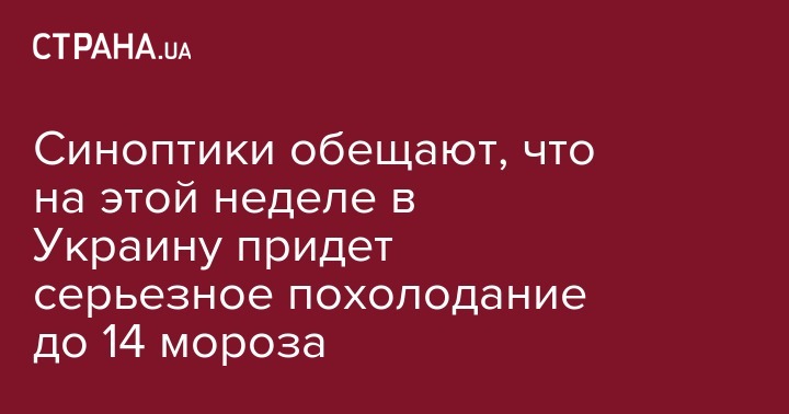 Синоптики обещают, что на этой неделе в Украину придет серьезное похолодание до 14 мороза