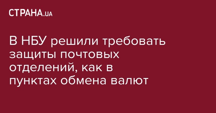В НБУ предложили распространить на операторов почтовой связи требования к защите помещений, действующие для небанковских финансовых учреждений, таких как пункты обмена валют.