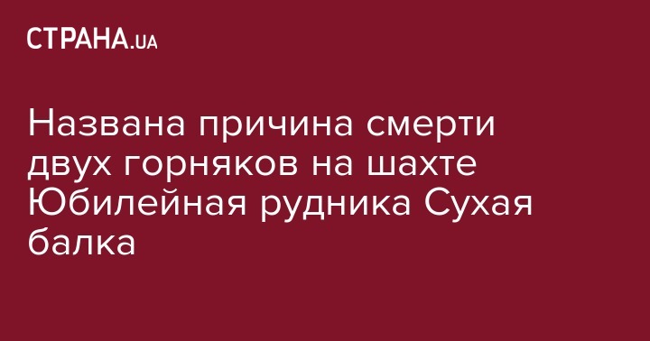 "13 февраля 2019 года 11-00. ЧАО "Сухая Балка". Ш.С.В. 1984 г.р., мастер - 5 лет, общий стаж - 14 лет, женат, детей - 2. П.Д.А. 1981 г.р., стаж - 5 лет, общий стаж - 20 лет, женат, детей - 2. Были найдены в нише под породоулавливающим возвышением на горизонте 1396м, с признаками отравления оксидом углерода. Сообщили 14 февраля 2019г", - сообщает Государственная служба по вопросам труда (Гоструда).