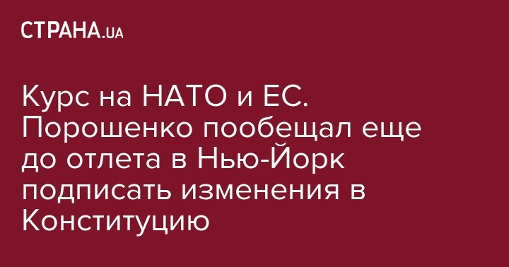 "Сегодня подпишу изменения в Конституцию относительно членства Украины в ЕС и НАТО", - сообщил Порошенко.