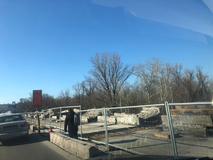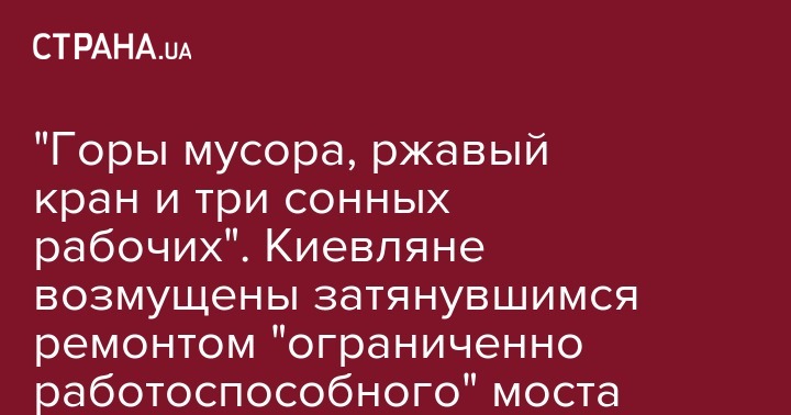 "Горы мусора, ржавый кран и три сонных рабочих". Киевляне возмущены затянувшимся ремонтом "ограниченно работоспособного" моста Метро