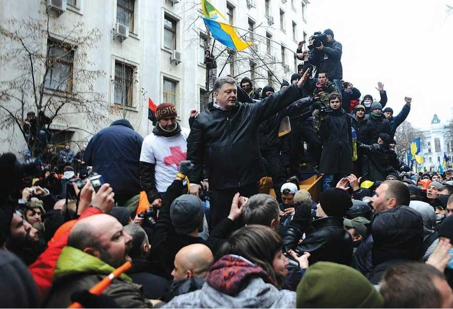 Народный депутат Семен Семенченко опубликовал в Facebook фото президента в компании правоохранителей и проиронизировал: "2014. Порошенко готовится выносить раненных "беркутами" Майдановцев. Напряжение борьбы и жертвенность будущего президента Украины поражает...".