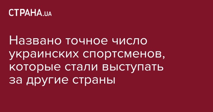 С 1991 года 137 украинских спортсменов начали выступление за другие страны. Об этом во вторник, 19 февраля 2019, передает УНН со ссылкой на данные Министерства молодежи и спорта Украины.