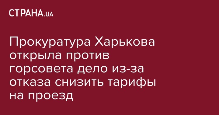 Харьковская прокуратура открыла дело против горсовета за невыполнение судебного решения о снижении тарифов на проезд в общественном транспорте. Об этом в среду, 20 февраля, сообщает пресс-служба прокуратуры. Дело открыто по статье об умышленном невыполнении судебного решения служебными лицами (ч.2 ст. 382 УК).