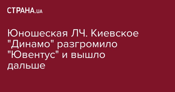 Юношеская команда киевского "Динамо" (U-19) со счетом 3:0 разгромила туринский "Ювентус", пробившись в 1/8 финала юношеской Лиги УЕФА, сообщает "Украинская правда"