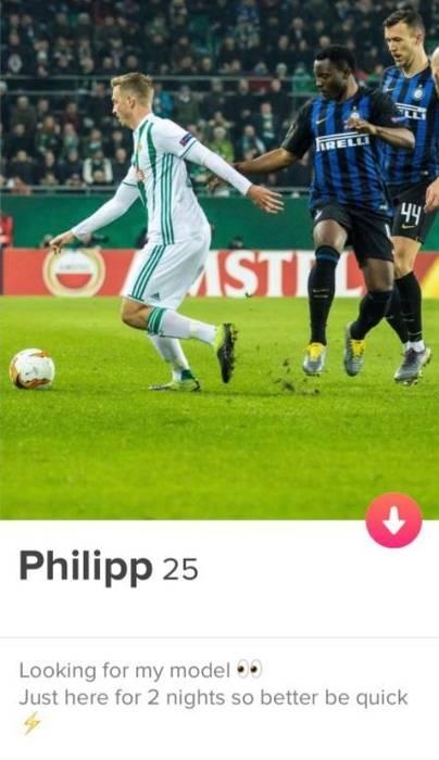 Полузащитник венского "Рапида" Филипп Шобесбергер вечером 19 февраля перед матчем 1/16 финала Лиги Европы против итальянского "Интера" решил провести время с незнакомой девушкой. Для этого футболист воспользовался приложением Tinder, которое предназначено для знакомств. Об этом сообщает isport.ua.