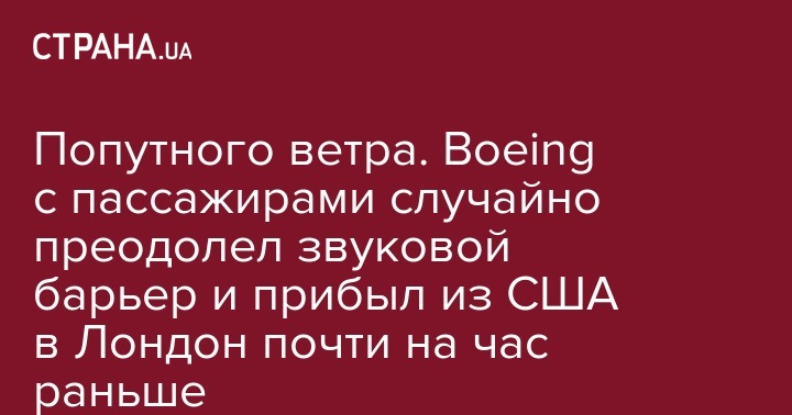 Попутного ветра. Boeing с пассажирами случайно преодолел звуковой барьер и прибыл из США в Лондон почти на час раньше