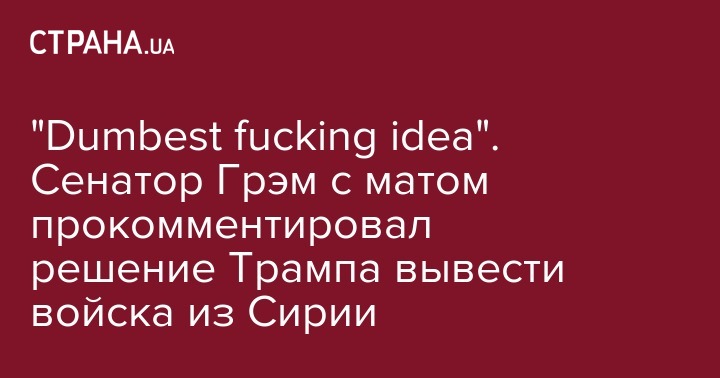 "Dumbest fucking idea". Сенатор Грэм с матом прокомментировал решение Трампа вывести войска из Сирии