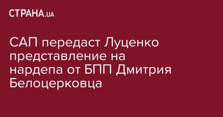 Специализированная антикоррупционная прокуратура Украины (САП) уже согласовала представление о снятии неприкосновенности и привлечении к уголовной ответственности депутата Верховной Рады Дмитрия Белоцерковца (фракция "Блок Петра Порошенко") и намерена передать документ генпрокурору Юрию Луценко.