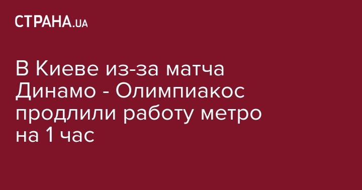Сегодня, 21 февраля, из-за футбольного матча Лиги Европы между командами Динамо (Киев) - Олимпиакос (Греция) столичная подземка будет работать на час дольше. Об этом КП "Киевский метрополитен" сообщил в Facebook.
