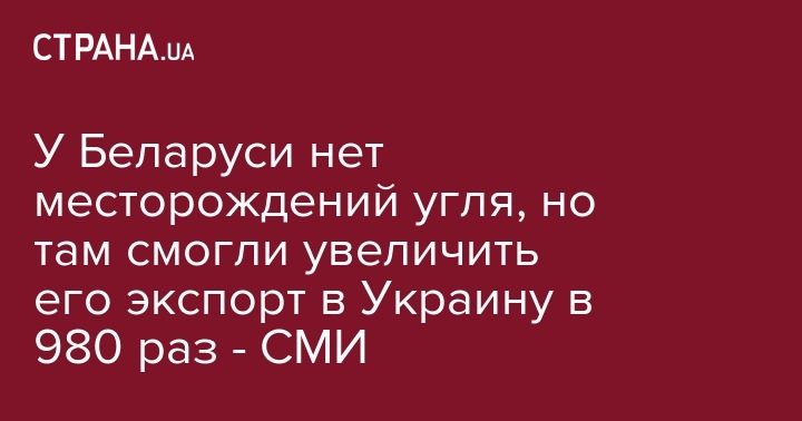 За прошлый год экспорт каменного угля из Беларуси в Украину вырос в 980 раз, антрацита - в 340 раз. И это при том, что в Беларуси нет своих месторождений, кроме бурого угля, пишет белорусское отделение Радио Свобода.