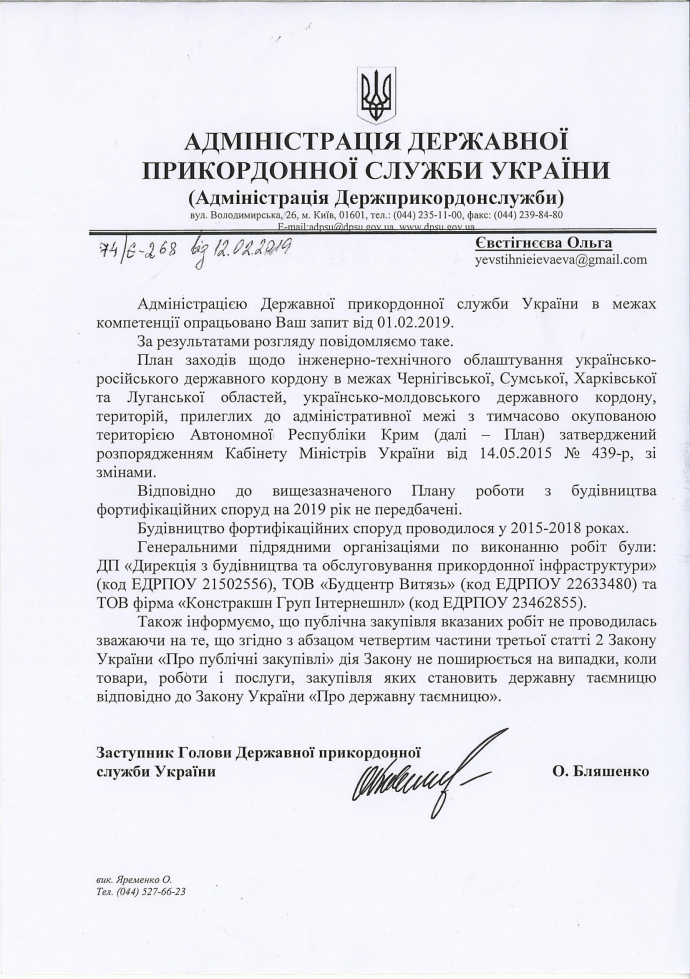 При этом среди генеральных подрядчиков по возведению фортификаций на границе с Российской Федерацией числится ООО "Стройцентр Витязь", директору и основателю которого еще в 2017 году НАБУ выдвинуло подозрение в растрате имущества в особо крупных размерах и подделке документов.