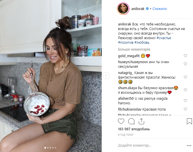 Недавно пережившая развод с мужем украинская певица Ани Лорак показала в соцсети фото, на которых она на кухне в коротких шортах готовит десерт.