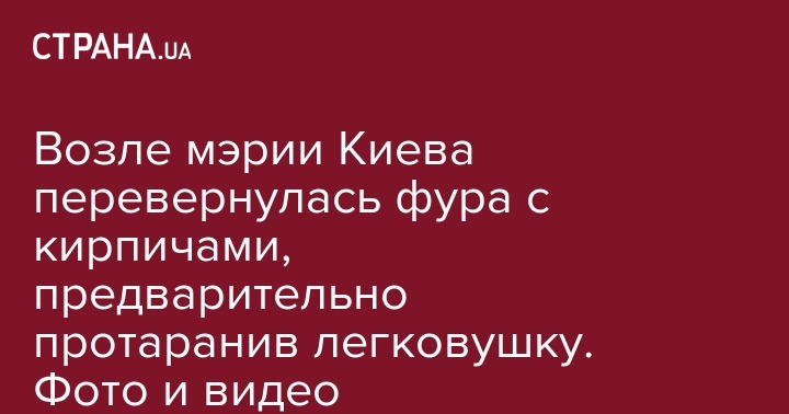 Возле мэрии Киева перевернулась фура с кирпичами, предварительно протаранив легковушку. Фото и видео