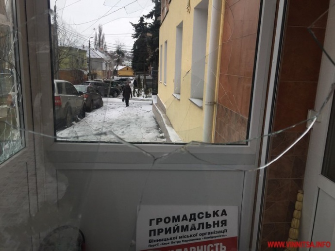 В Виннице неизвестные разбили окна входной двери общественной приемной партии Блок Петра Порошенко "Солидарность". Инцидент произошел 22 февраля около 7:00. Полиция начала расследование. Об этом сообщается на сайте ГУНП Винницкой области.