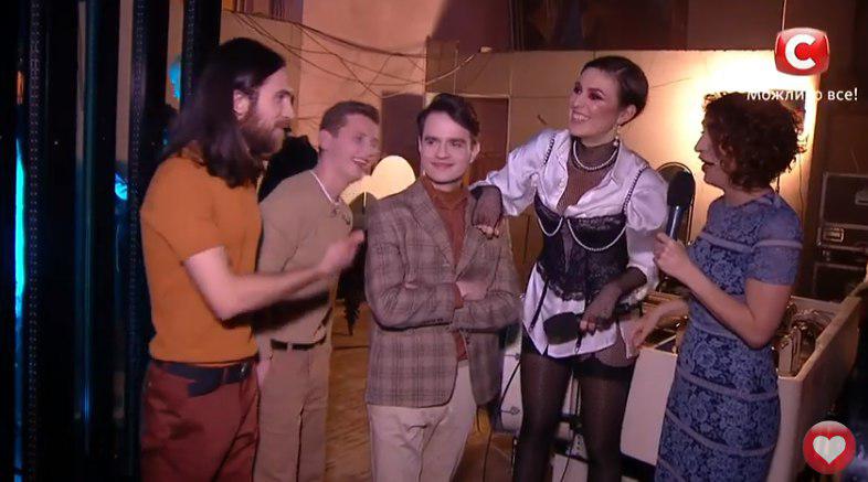 20:47 В рекламной паузе Brunettes Shoot Blondes признаются, что хотели бы, чтобы у их рояля станцевала Maruv. Девушка не стала отказываться. Также она ответила на вопрос ведущей о своем росте - 180 сантиметров. В конце парни из Brunettes Shoot Blondes и Maruv вместе поют песню "Одна калина за вiкном".