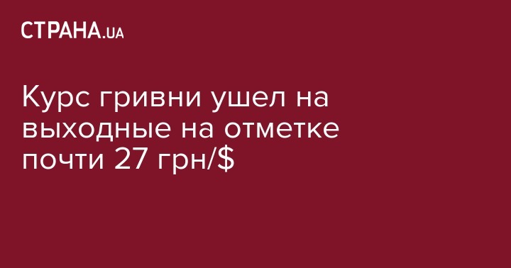 В пятницу, 22 февраля, межбанковский курс украинской национальной валюты укрепился до 27,015 грн/$1 с 27,0325 грн/$1 в предыдущий рабочий день. Об этом сообщили дилеры коммерческих банков, передает "Интерфакс-Украина".