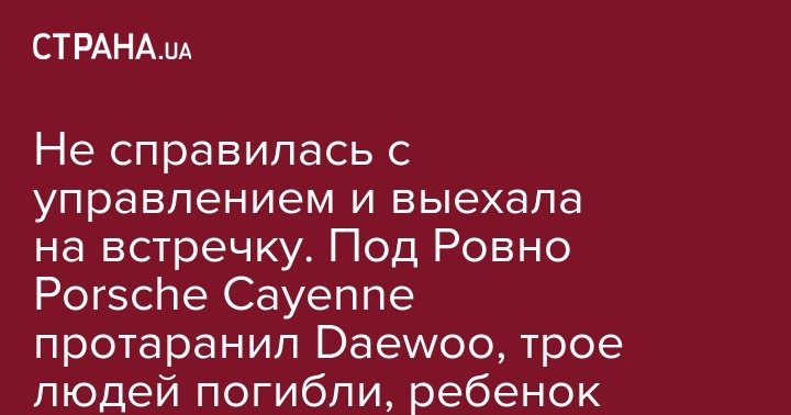 Не справилась с управлением и выехала на встречку. Под Ровно Porsche Cayenne протаранил Daewoo, трое людей погибли, ребенок в реанимации