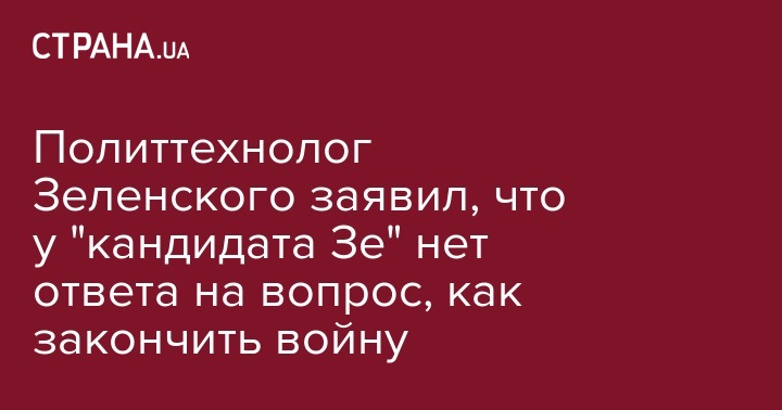Политтехнолог Зеленского заявил, что у "кандидата Зе" нет ответа на вопрос, как закончить войну