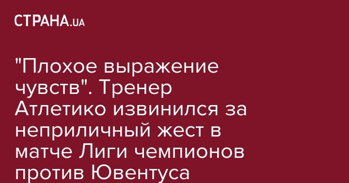 "Плохое выражение чувств". Тренер Атлетико извинился за неприличный жест в матче Лиги чемпионов против Ювентуса
