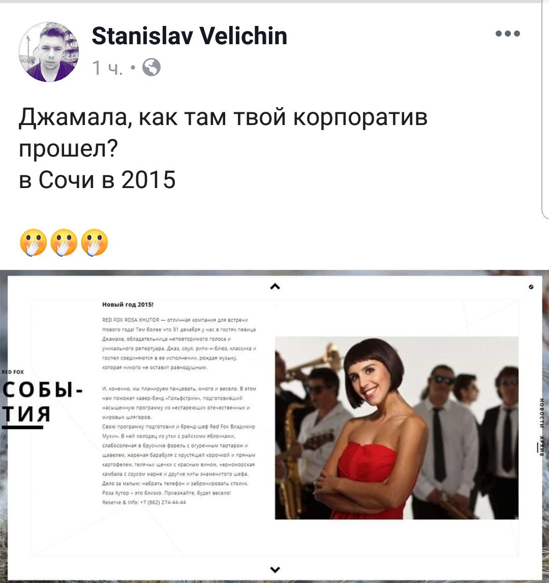 Вопрос родителей Джамалы - не простой. Он рождает уверенность, что сама певица не смогла бы пройти "проверку патриотизмом" на столь пристрастном конкурсе. Тем более, что и она - гастролировала в России уже после аннексии Крыма.