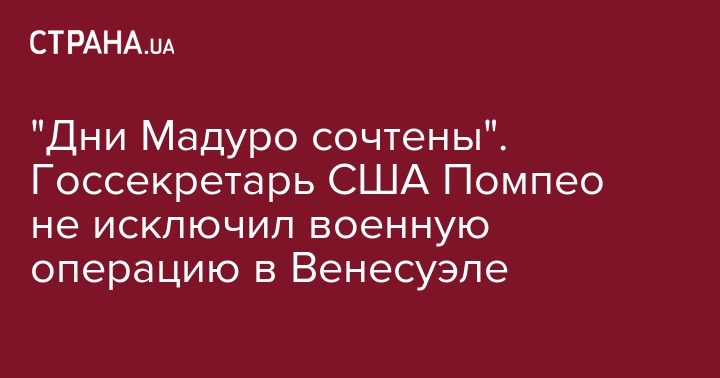 Как подчеркнул Помпео, он "убежден, что венесуэльцы могут быть уверены: дни Мадуро у власти сочтены".