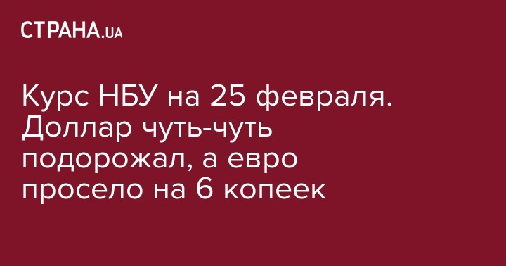 Официальный курс валют на 25 февраля установлен на следующем уровне: