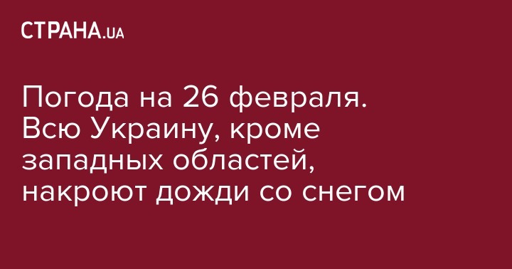 Погода на 26 февраля. Всю Украину, кроме западных областей, накроют дожди со снегом