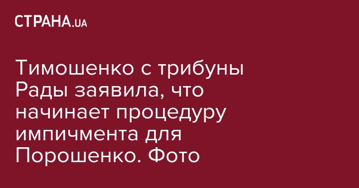 Сегодня, 26 февраля, выступая на заседании парламента, лидер фракции "Батькивщина", кандидат в президенты Юлия Тимошенко заявила, что вместе с другими фракциями начинает процедуру импичмента президента Петра Порошенко после расследования журналистов об обогащении его окружения в оборонной сфере.