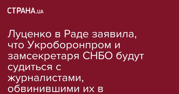 Луценко в Раде заявила, что Укроборонпром и замсекретаря СНБО будут судиться с журналистами, обвинившими их в коррупции