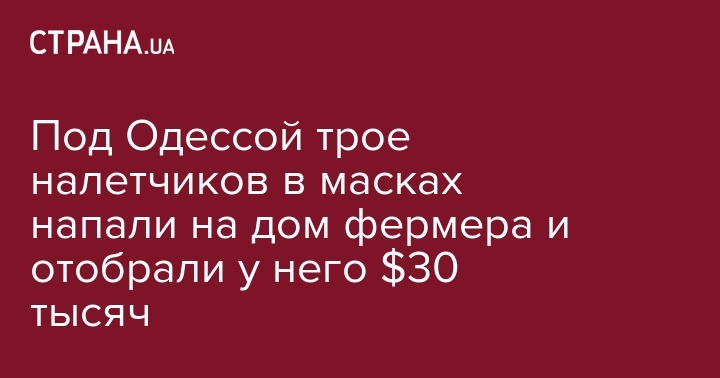 В селе Ручей Одесской области произошло разбойное нападение: неизвестные забрались в дом фермера и украли у него ювелирные изделия и 30 тысяч долларов. Об этом со ссылкой на правоохранителей сообщает УНН