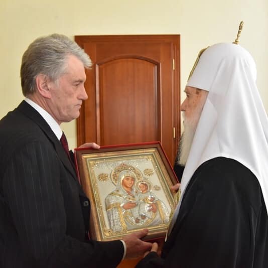 "Икона Богородицы и букет". Филарет с опозданием поздравил с юбилеем экс-президента Ющенко