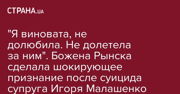 "Я виновата, не долюбила. Не долетела за ним". Божена Рынска сделала шокирующее признание после суицида супруга Игоря Малашенко