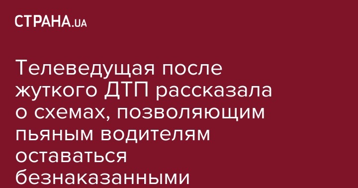 Телеведущая после жуткого ДТП рассказала о схемах, позволяющим пьяным водителям оставаться безнаказанными