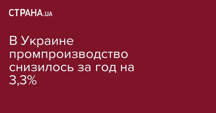 В январе 2019 года промышленное производство в Украине сократилось на 3,3% по сравнению с аналогичным периодом 2018 года. Об этом сообщает Государственная служба статистики.