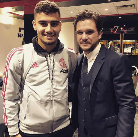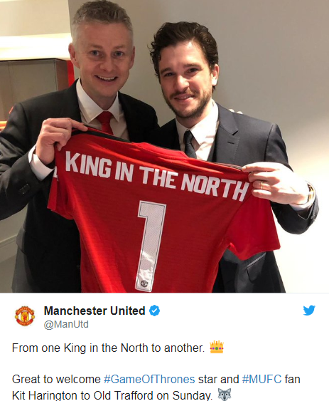 Кит Харрингтон сфотографировался вместе с исполняющим обязанности главного тренера Оле-Гуннаром Сульшером и получил именную футболку команды. Также Кит Харрингтон сфотографировался и со многими другими игроками "красных дьяволов".