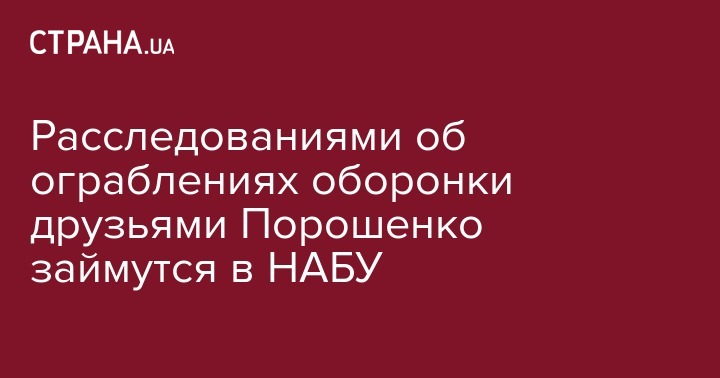 Расследованиями об ограблениях оборонки друзьями Порошенко займутся в НАБУ