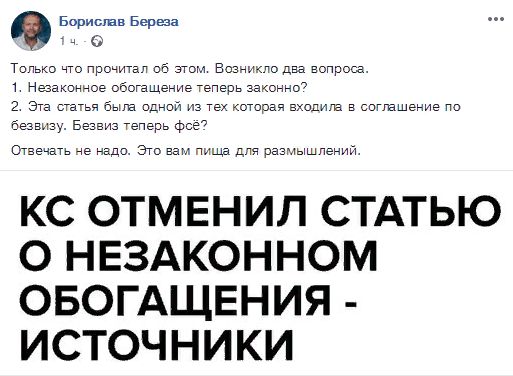 2. Эта статья была одной из тех которая входила в соглашение по безвизу. Безвиз теперь фсё?", такую пищу для размышлений подкинул народный депутат Украины Борислав Береза в Facebook.