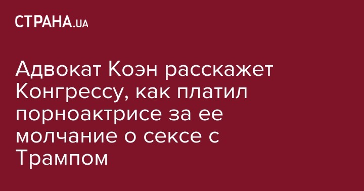 Адвокат Коэн расскажет Конгрессу, как платил порноактрисе за ее молчание о сексе с Трампом
