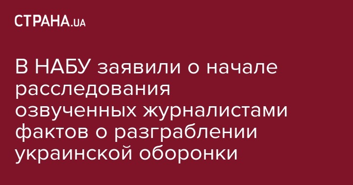 Национальное антикоррупционное бюро (НАБУ) начало досудебное расследование фактов опубликованной журналистами информации о коррупции в оборонном секторе. Уголовное производство открыто по признакам присвоения, растраты имущества или завладения им путем злоупотребления служебным положением. Об этом сообщает пресс-служба НАБУ в среду, 27 февраля на своей странице в соцсети.