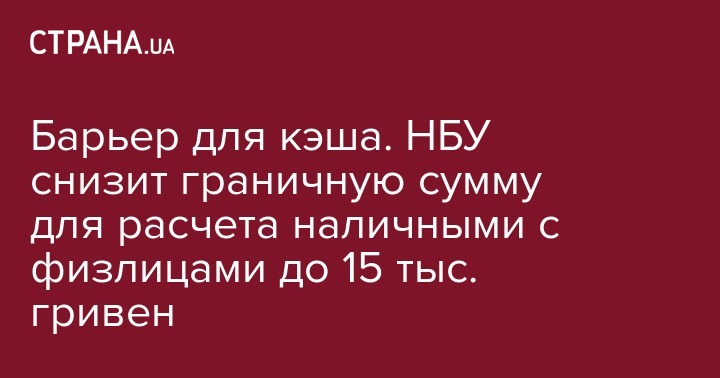 Барьер для кэша. НБУ снизит граничную сумму для расчета наличными с физлицами до 15 тыс. гривен