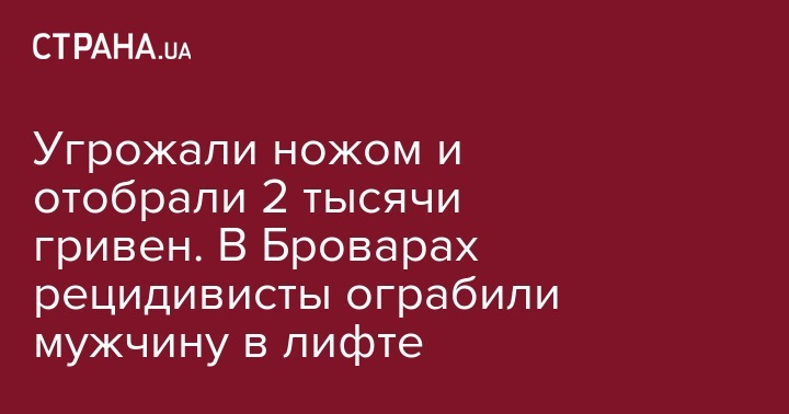 Угрожали ножом и отобрали 2 тысячи гривен. В Броварах рецидивисты ограбили мужчину в лифте