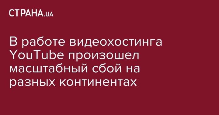 В работе видеохостинга YouTube произошел масштабный сбой на разных континентах